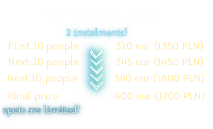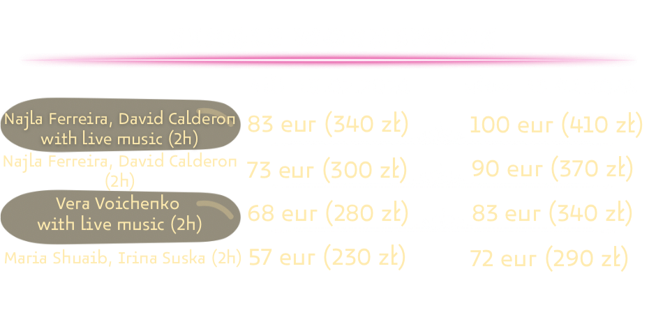 • To reserve your spot at workshops you need to fill out the form on the website yasalamwarsaw.com and make first payment after receiving a confirmation email within 5 working days. The second installment should be paid in 30 days (or before the Festival begins). If payment is missing your order will be canceled.